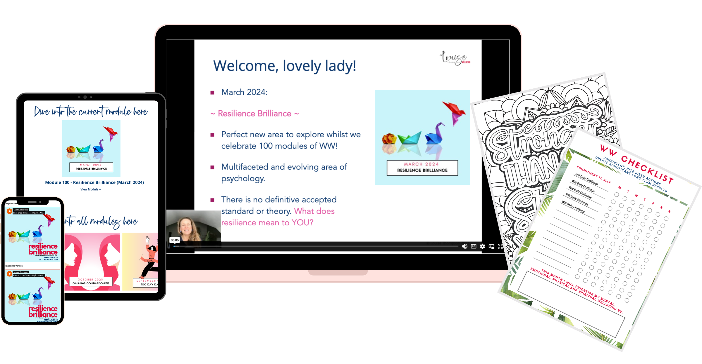 When you sign up for RESILIENCE BRILLANCE, you get an all-access-pass to the Wellbeing Warriors Coaching Academy and will have 100 Wellbeing Courses at your fingertips for as long as you are a Member (cancel any time - it's risk-free!).